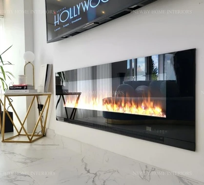 60" Black Glass Media Wall Electric Fire Insert - 10 Colour LED Flames Sale
